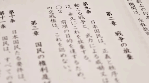 第九条 日本国民は、正義と秩序を基調とする国際平和を誠実に希求し、国権の発動たる戦争と、武力による威嚇又は武力の行使は、国際紛争を解決する手段としては、永久にこれを放棄する。