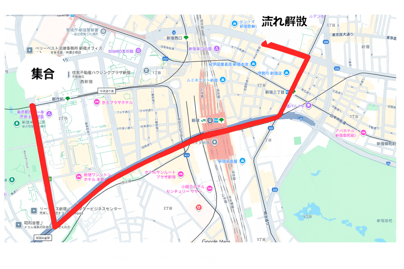 パレードコース:東京・新宿中央公園(集合)~ 四季の路(流れ解散)