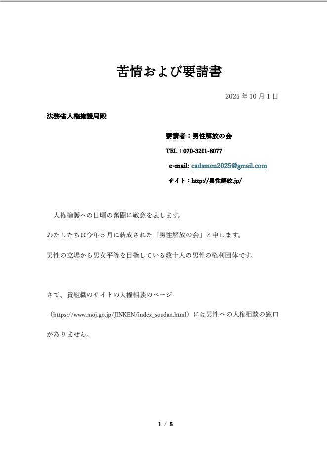2025年10月2日(木)、法務省人権擁護局に苦情をいれました。
